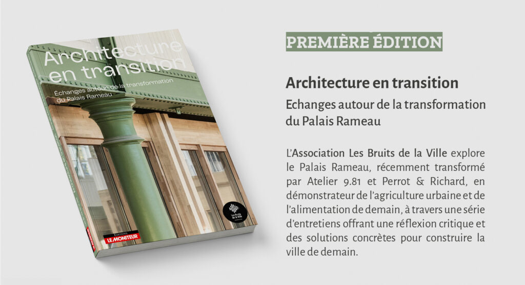Pensée comme une plateforme multidisciplinaire, l’association Les Bruits de la Ville mène et suit toutes réflexions et actions susceptibles d’encourager et de développer les questions du développement durable et du vivre ensemble dans l’architecture, le milieu urbain et l’aménagement du territoire. L’association structure, développe et anime un réseau de coopération des acteurs des métiers de la ville autour de ces thèmes pour apporter solutions et réflexions face aux défis climatiques, économiques et sociaux de notre époque.